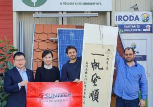Nemrég itt járt nálunk a Suntech, és elhozták a jókívánságukat cégünk 10. évfordulója alkalmából. Egy hatalmas, gyönyörű kalligráfiát is kaptunk ajándékba. Ezt ők is megosztották